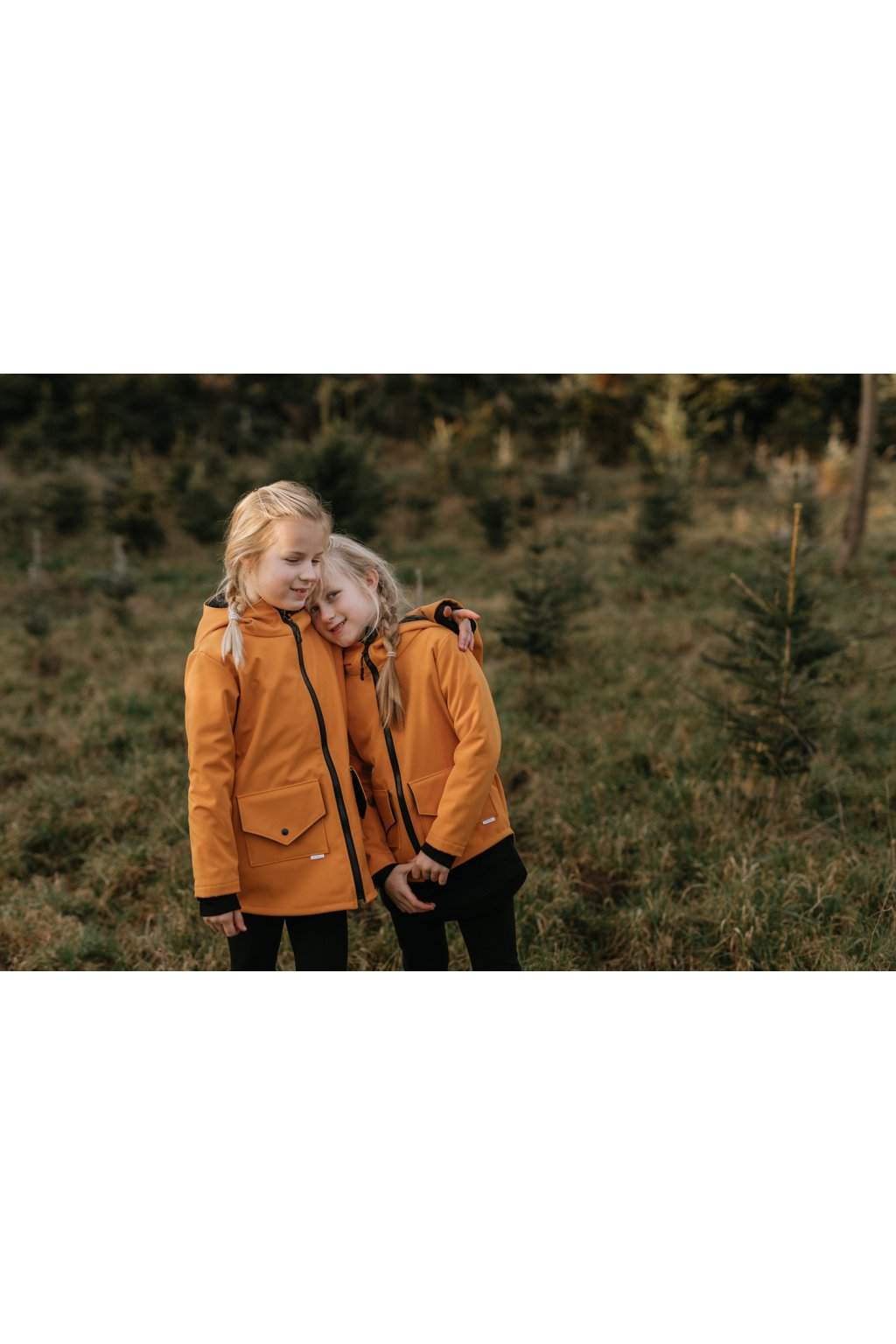 Základem je prodloužený, rovný střih. Zadní díl je střižený do kulata a je opatřen reflexním pruhem, přední díl je rovný. Tato bunda je navržena tak, aby rostla s Vašimi dětmi a vydržela v šatníku opravdu dlouho. Je ušitá ze softshellu zatepleného fleecem, který neprofoukne, ani nepromokne a ještě zahřeje.