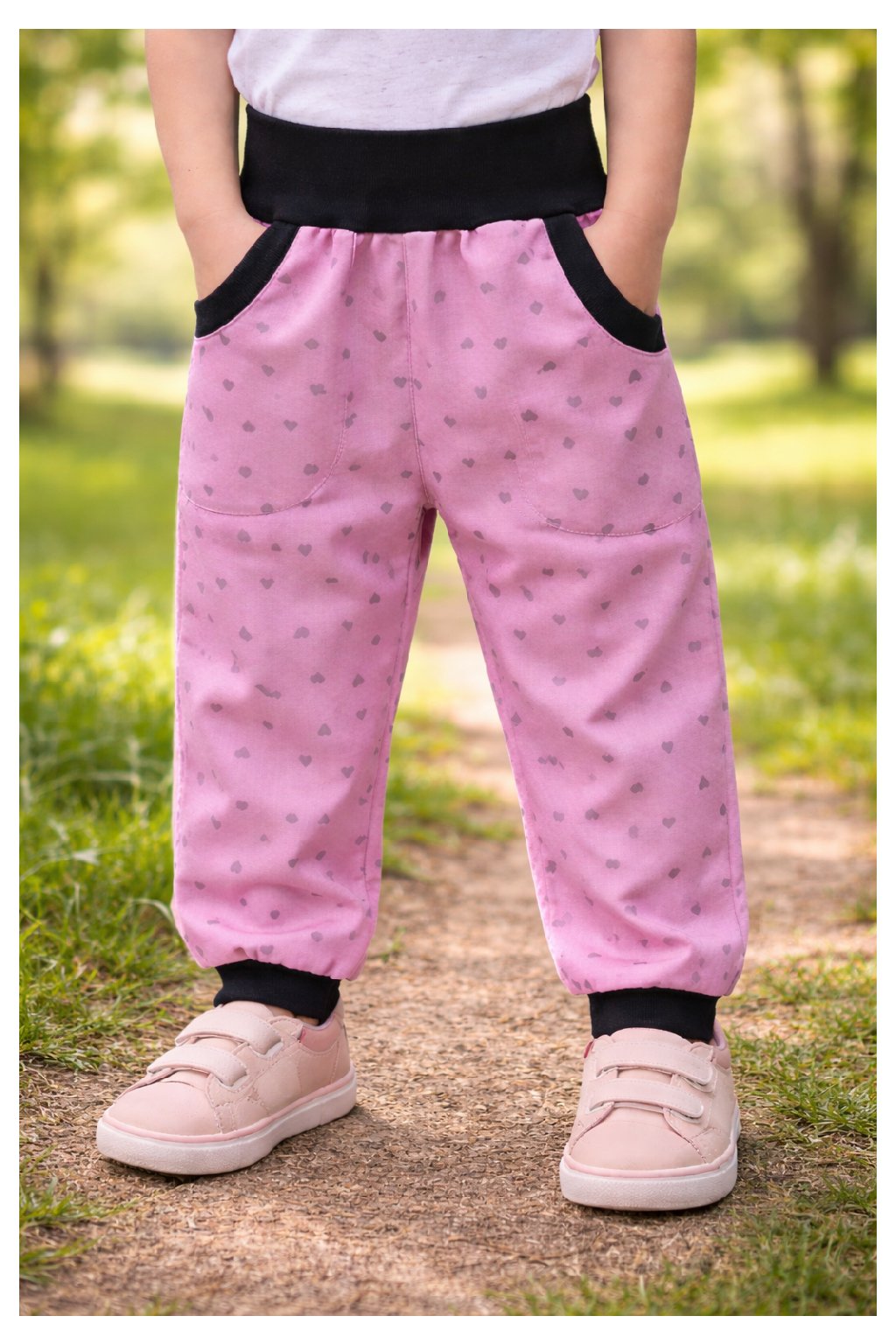Díky sníženému sedu a šířce kalhot jsou vhodné i pro děti s látkovou plenou. Pod kalhoty se pohodlně vejdou i punčocháčky, nebo legíny.