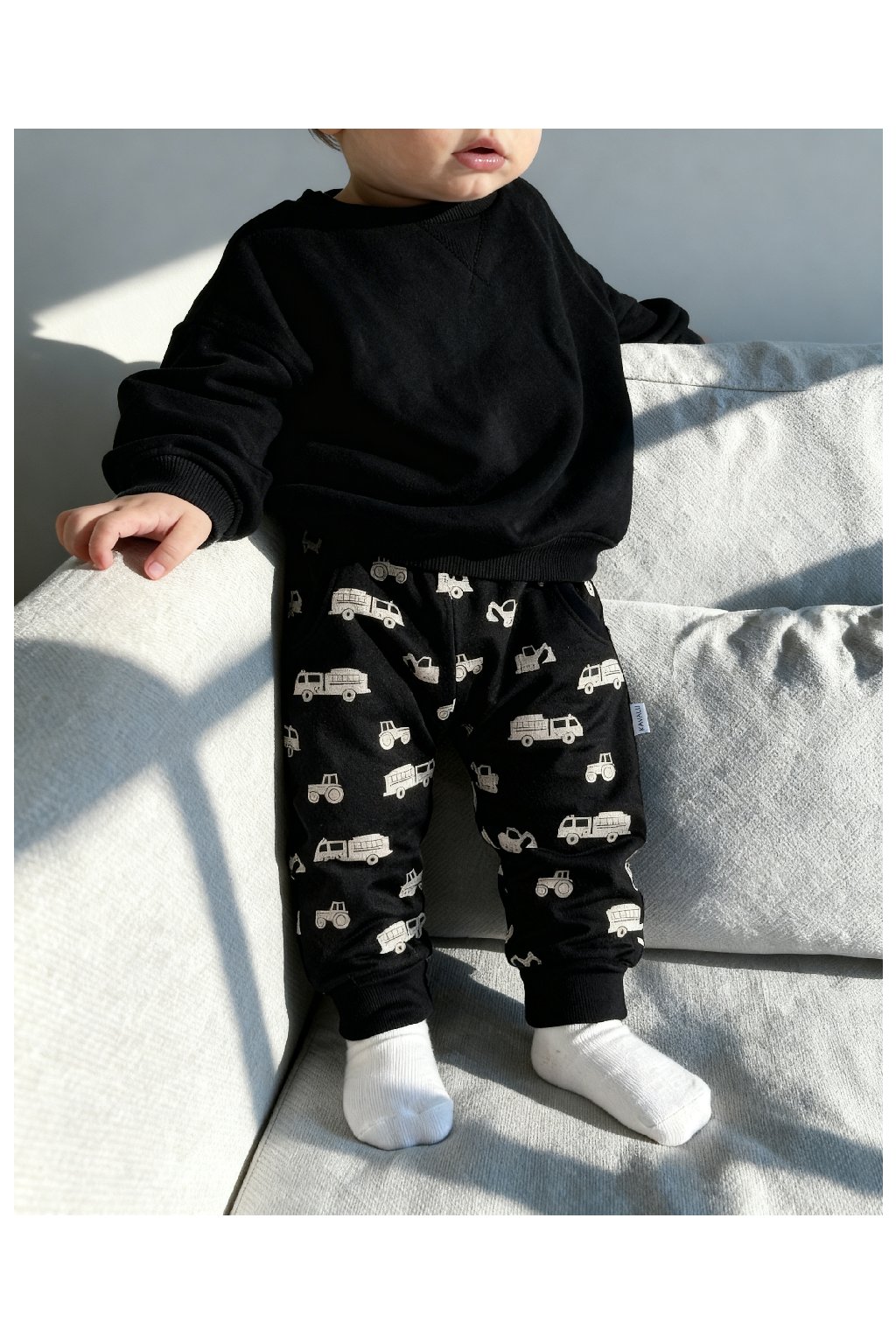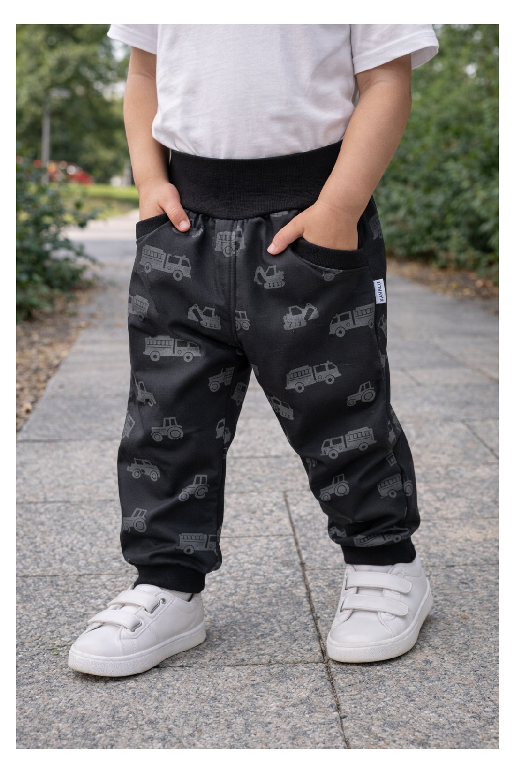 Díky sníženému sedu a šířce kalhot jsou vhodné i pro děti s látkovou plenou. Pod kalhoty se pohodlně vejdou i punčocháčky, nebo legíny.