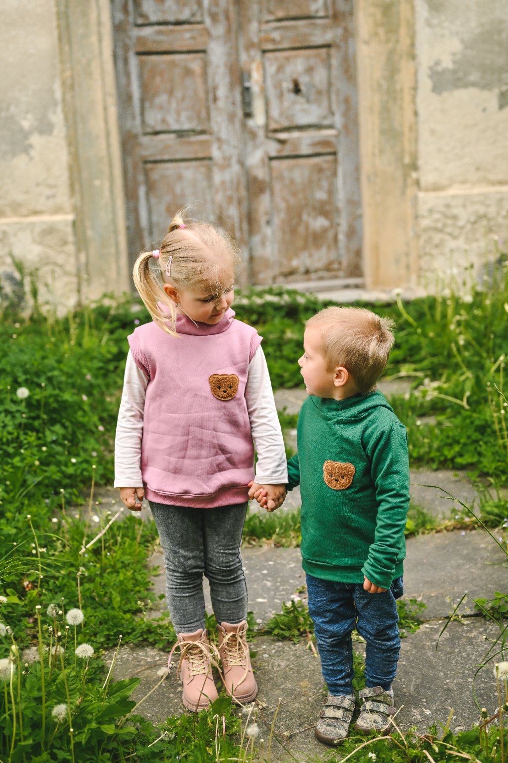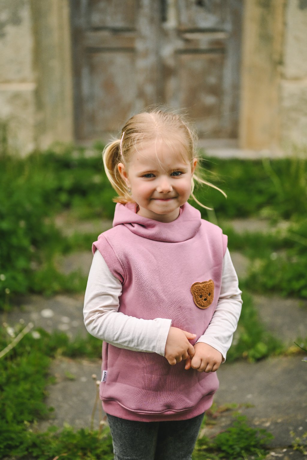 Prodloužený střih chrání záda i při hře venku, kapuce dodává vestě sportovní vzhled a roztomilá nášivka medvídka potěší každého malého dobrodruha.