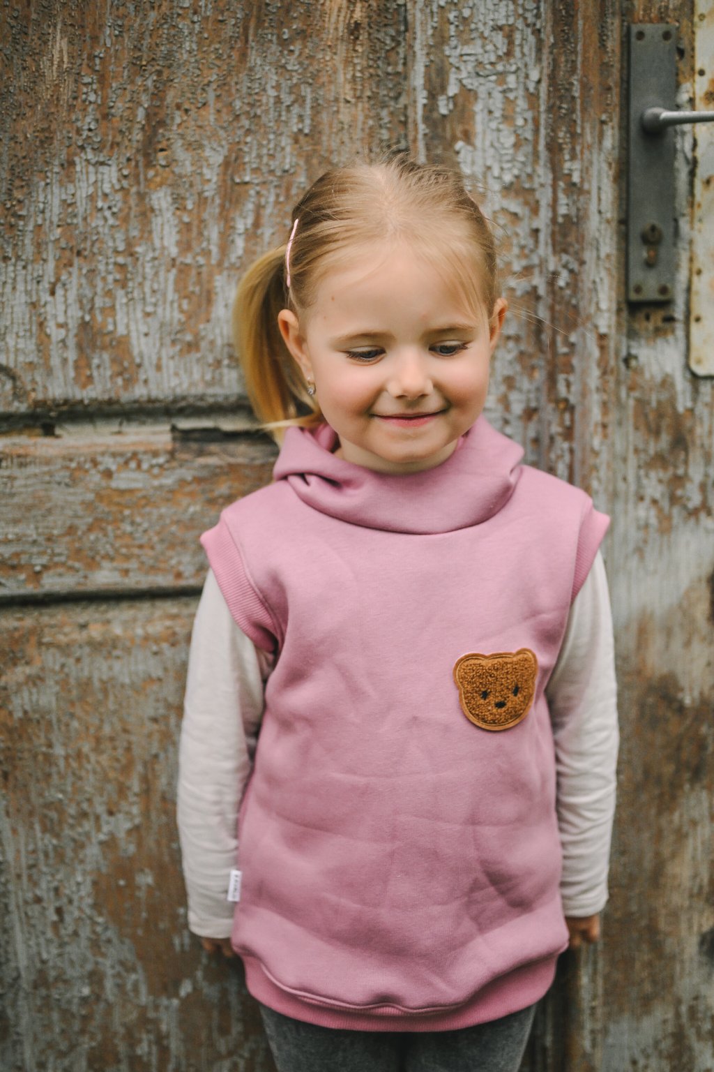 ĚTSKÁ ZATEPLENÁ PRODLOUŽENÁ VESTA S NÁŠIVKOU MEDVÍDKA